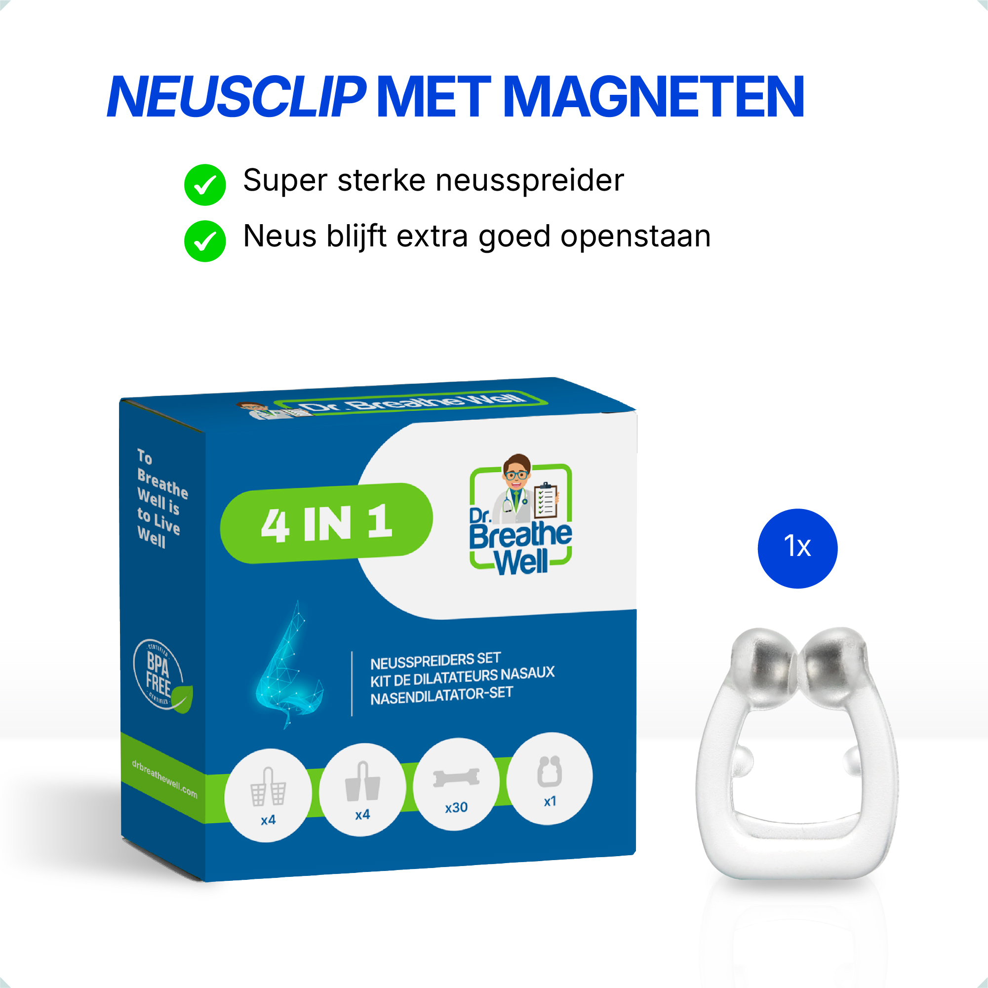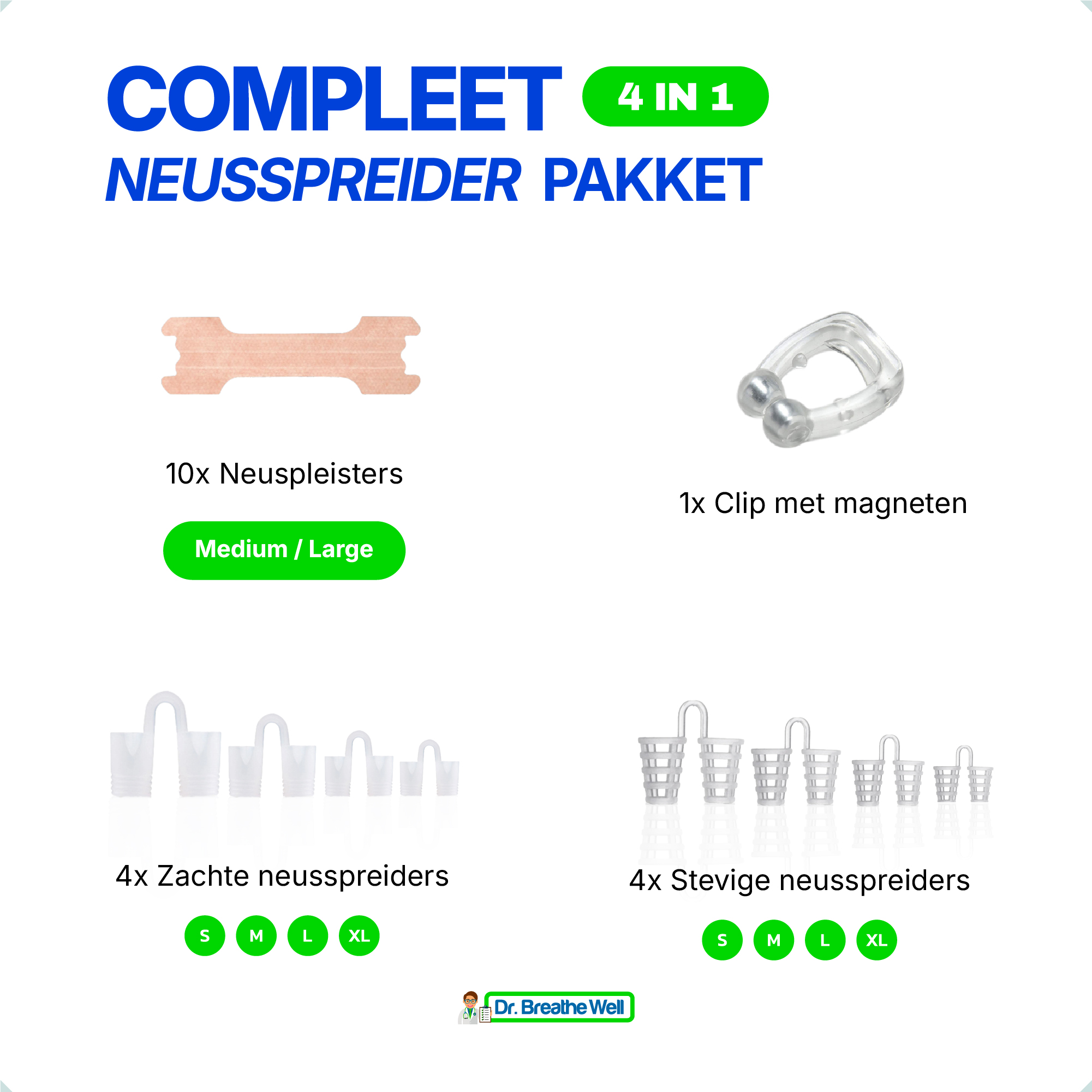 Dit pakket bevat de 4 beste neusspreiders. Haal weer vrij adem, slaap beter en stop met snurken.