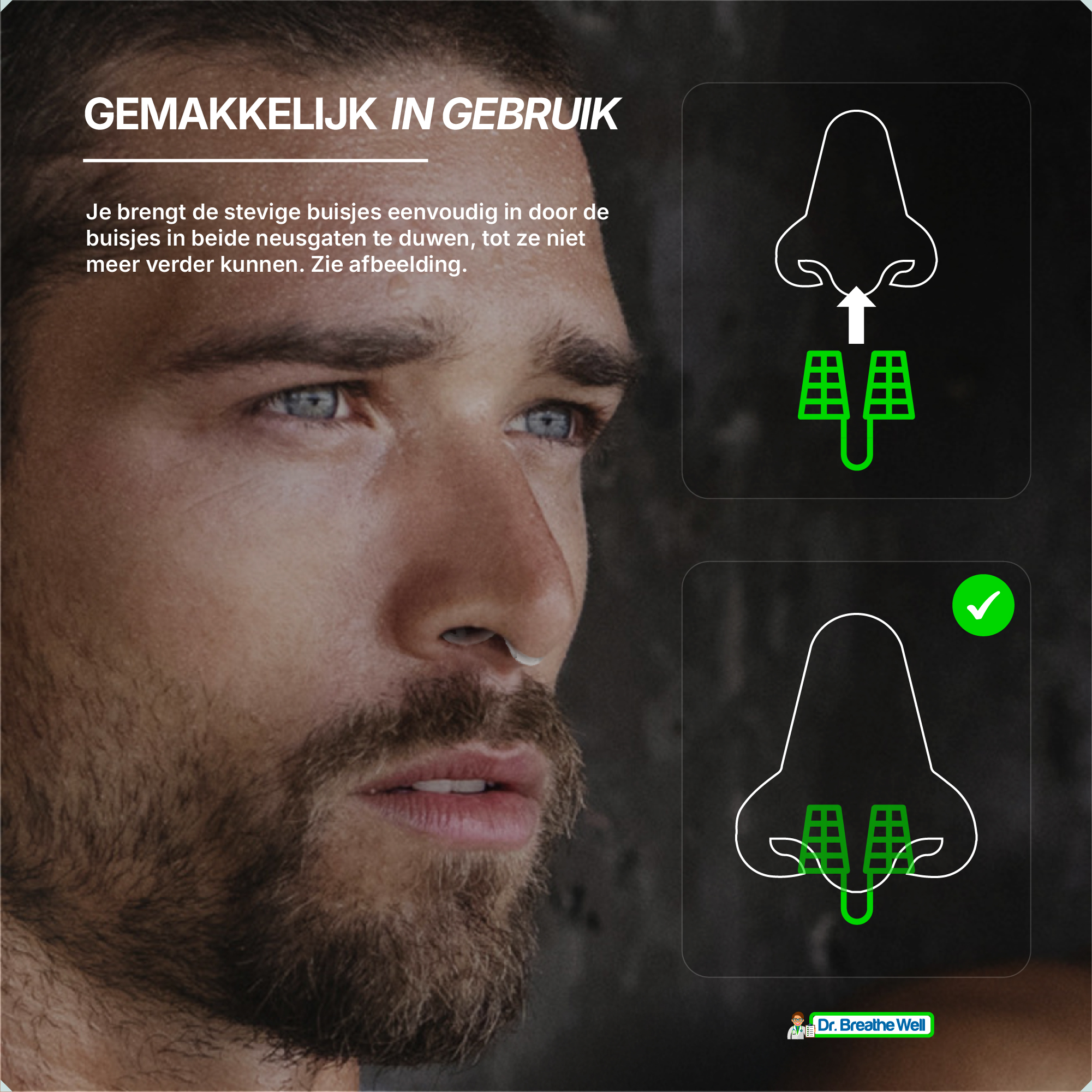 Dr. Breathe Well is uitermate geschikt als jij kampt met een gehinderde neusademhaling. Als jij lijdt aan snurken door de neus dan zijn de stevige buisjes het ideale anti snurk middel voor jou. Ook wanneer je in zijn algemeen last hebt van moe wakker worden dan is Dr. Breathe Well het proberen waard. De extra zuurstof die je hersenen ontvangen tijdens het slapen, zorgt ervoor dat je uitgeruster wakker wordt en je je overdag fitter voelt.